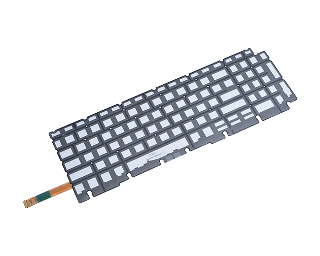 键盘背光模组是以导光膜板为核心基础部件的组件产品,由遮光膜、反光膜、导光板、FPC和LED组成。公司键盘背光模组以LED为光源,采用微纳米压印技术在导光PC上形成光学微结构(导光板)通过反射和折射的原理,实现将点光源转换为面光源,达到指定区域发光的效果,其广泛应用于各类电子产品输入设备(如笔记本电脑键盘、平板电脑外置皮套键盘等)具有环保,超薄,导光均匀,功耗低等特点。