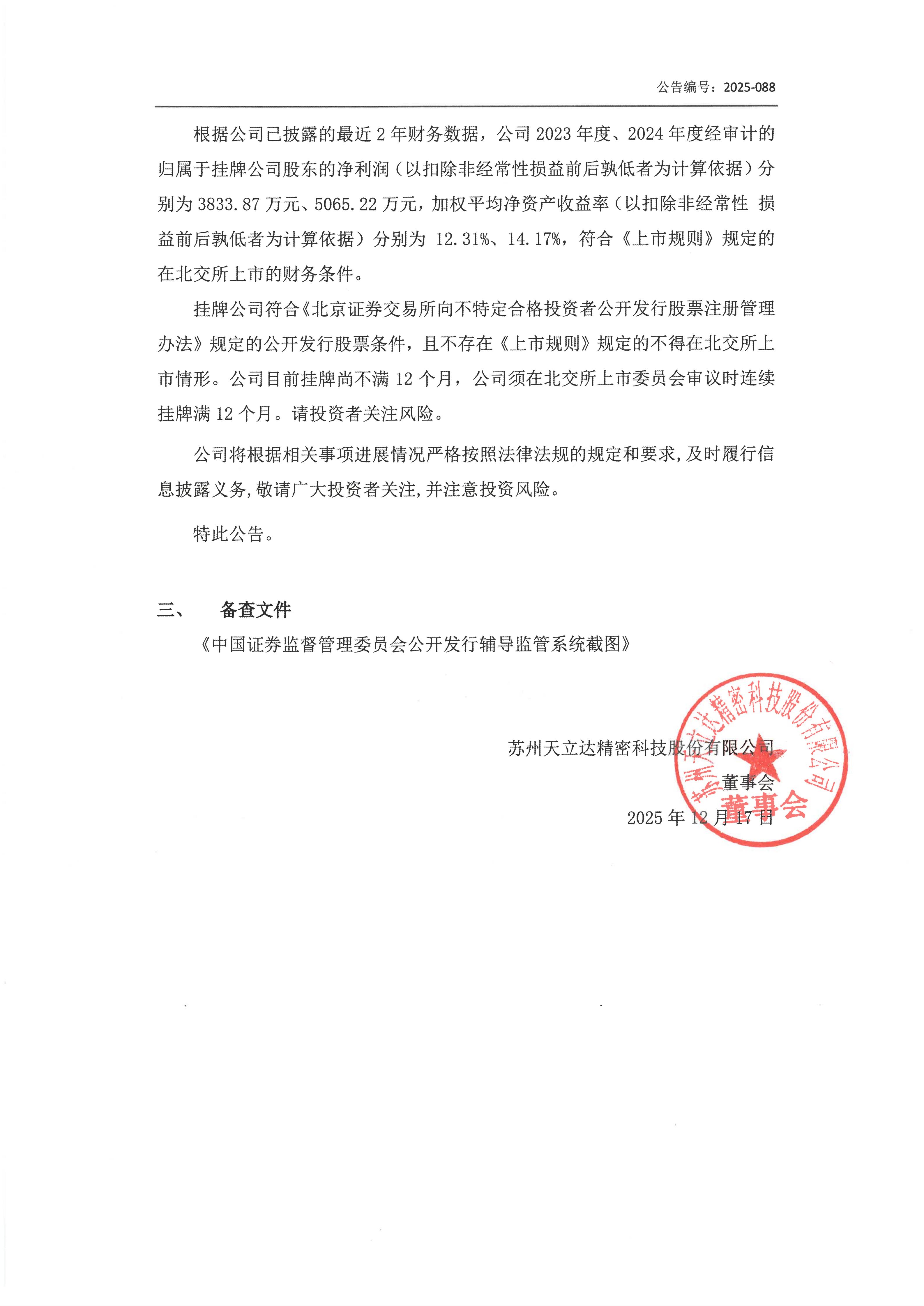2025-088 申请公开发行股票并在北交所上市辅导备案及其进展公告.pdf